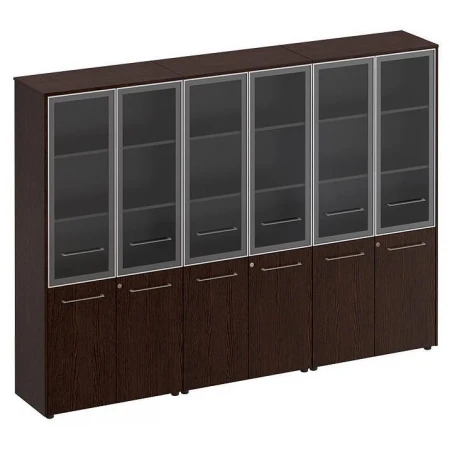 Шкаф книжный является стенкой, состоящей из трех шкафов со стеклом для документов под общим топом.