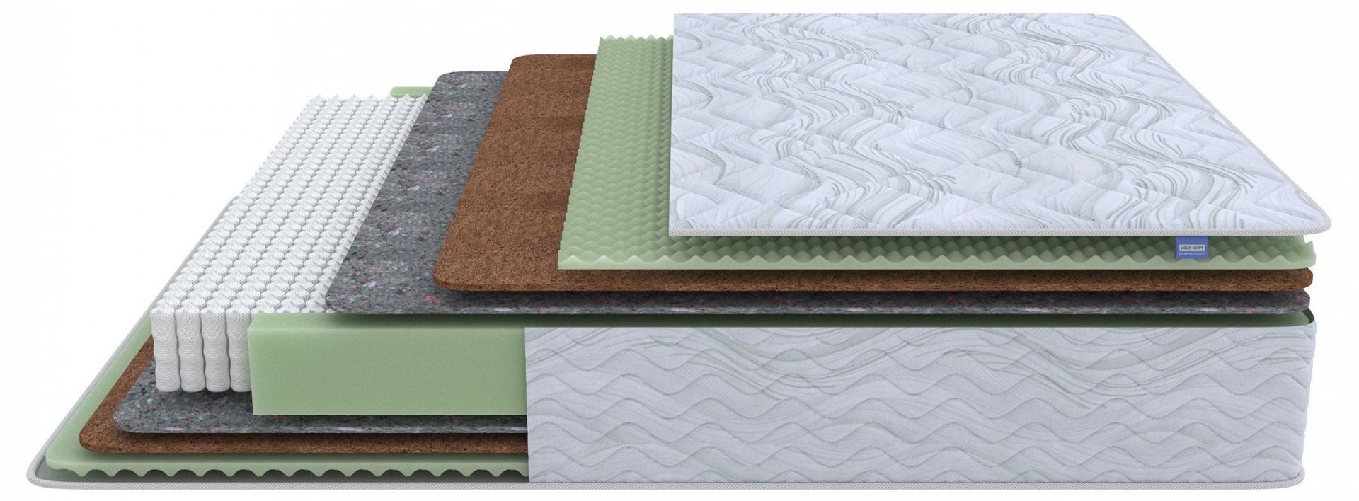 Матрас ProSon Green M содержит прослойку из кокосовой койры. Кокос — натуральный материал, отлично дышит, придает матрасу жесткость и упругость.