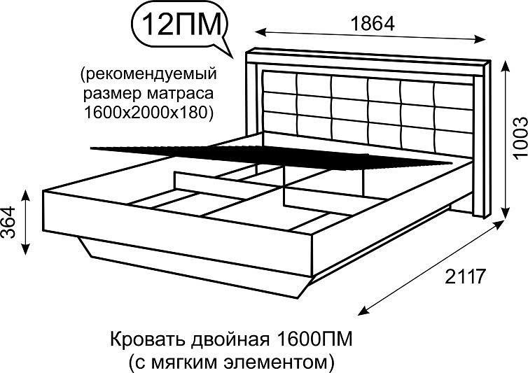 Кровать двуспальная Люмен 12 – отличное решение для интерьера вашей спальни. Данная модель создана брендом Ижмебель (Россия) и входит в серию Люмен. Ее фактические параметры соответствуют 1002 мм в высоту, 1860 мм в ширину, а длина кровати составляет 2116 мм. Размеры спального места: 2000 мм в длину и 1600 мм в ширину. Прочный и надежный корпус (ЛДСП Е1, МДФ экокожа, белый, дуб сакраменто глянцевый, матовый БЕЛЫЙ) отлично сочетается с изящным фасадом модели ( экокожа, матовый белый). В комплект также входит основание ортопедическое, подъемный механизм, ящик для белья. Стоимость изделия 32318 руб. Приятных покупок!