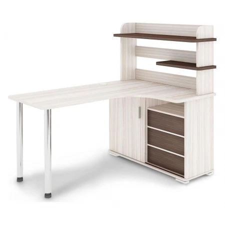 Дети делают на нем домашние задания, взрослые с его помощью зарабатывают деньги – компьютер актуален для всех. Стол компьютерный СР-165М MER_SR-165M_KSHK-PRAV – то, что нужно, чтобы создать качественное рабочее пространство, позволяющее расположиться с максимальным комфортом. Эта модель создана брендом 2735048, серия «Домино», на товар предоставляется гарантия (12 мес.). Глянцевый, матовый корпус сделан из долговечного и практичного материала (ЛДСП Е1) и отлично впишется в любой интерьер благодаря выигрышному оттенку (карамель, хром, шамони). Столешница, толщина которой составляет 25 мм (материал столешницы), имеет верх, при этом общие габариты компьютерного стола составляют 1600 мм в ширину и 1385 мм в высоту. Производитель также включил в комплект надстройка: