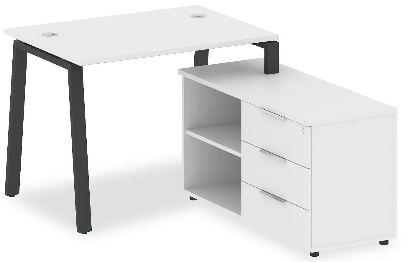 • 3 ящика. Для изготовления корпуса был выбран ЛДСП Е1, металл в оттенке белый, антрацит, завершает дизайн матовый верхний слой, гармонично перекликающийся со столешницей. Купить данную модель вы можете по привлекательной цене, равной 30987 руб.