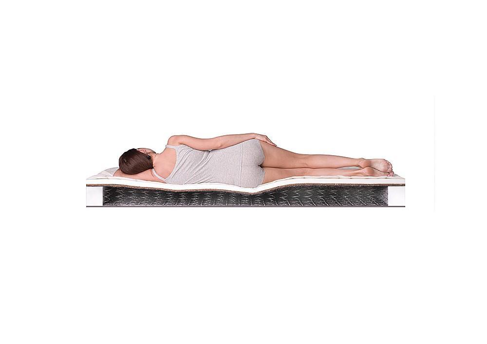 Рабочие поверхности данной модели, смонтированной на классическом пружинном механизме Bonnel, обладают неодинаковыми свойствами. Сторона А порадует вас высоким уровнем анатомичности, благодаря толстому слою наполнителя из натурального латекса. Сторона В не менее анатомична, однако имеет более высокий уровень жёсткости за счёт дополнительного слоя из кокосовой койры. Защитная прослойка из льноджутового волокна изолирует оба наполнителя от пружинного блока, препятствуя разрушительному трению и продлевая срок службы матраса.