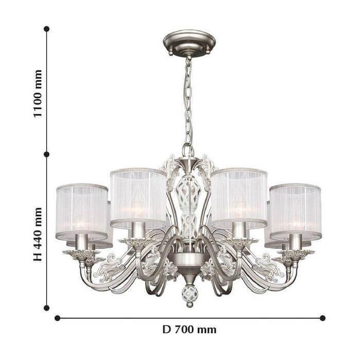 Невероятная модель 2306-8P от немецкой компании Favourite относится к коллекции Prima и отлично подойдет для установки на потолок в гостиной, оформленной в классическом стиле. Подвесная люстра Favourite Prima 2306-8P с цилиндрическими плафонами осветит помещение площадью 21.3 кв. м. Производитель Favourite рекомендует использовать для устройства лампы накаливания с цоколем E14 и мощностью 40 W. Прибор произведен с использованием материалов: текстиль, металл и органза и может использоваться для натяжного потолка. Основным цветом товара является белый и серебряный. Торопитесь сделать заказ в интернет-магазине SvetONe.