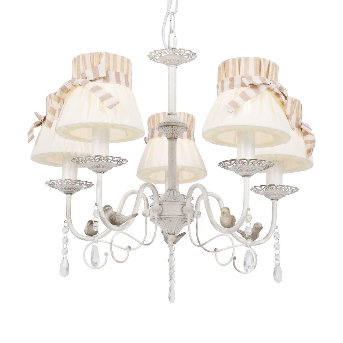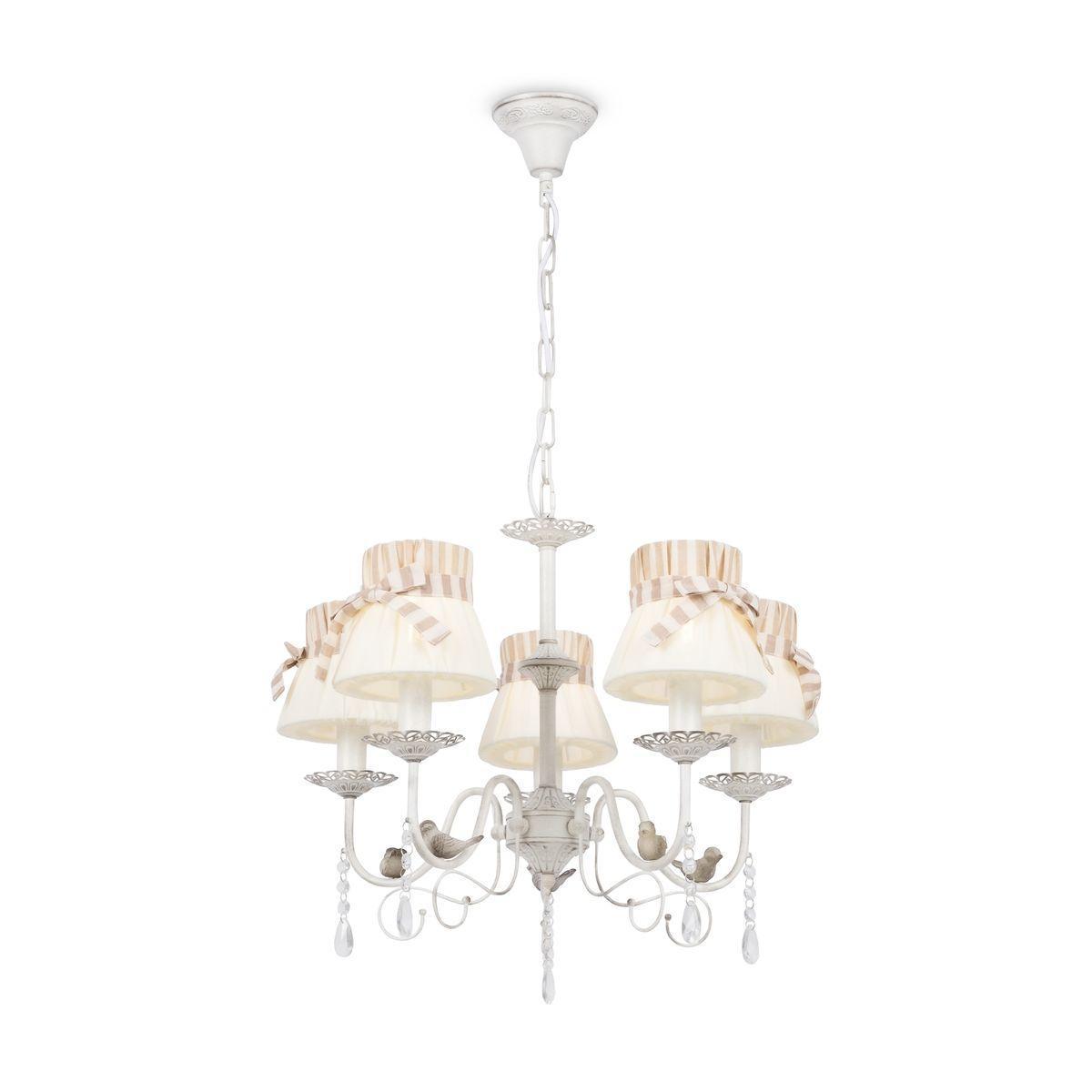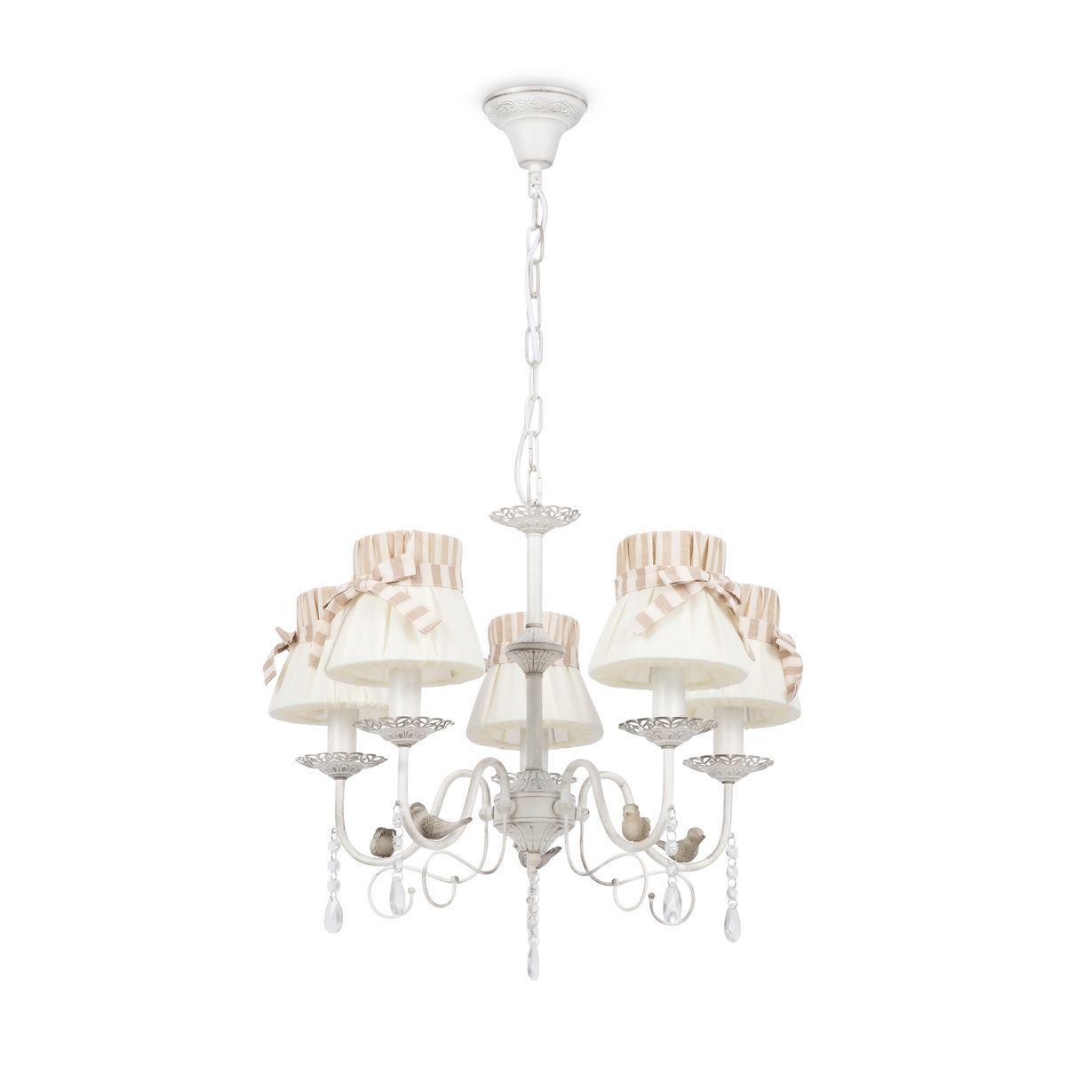 Поразительная модель FR5122PL-05WG от компании Freya относится к коллекции Fable и отлично подойдет для установки на потолок спальни, оформленной в стиле прованс. Подвесная люстра Freya Fable FR5122PL-05WG с плафонами-конусами осветит помещение площадью 13.3 кв. м. Производитель Freya рекомендует использовать для устройства лампы накаливания с цоколем E14 и мощностью 40 W. Прибор произведен с использованием материалов: текстиль, металл и ткань и может использоваться для натяжного потолка. Основным цветом товара является белый. Подвесная люстра FR5122PL-05WG продается по цене 13740 руб. Торопитесь сделать заказ в интернет-магазине SvetONe.