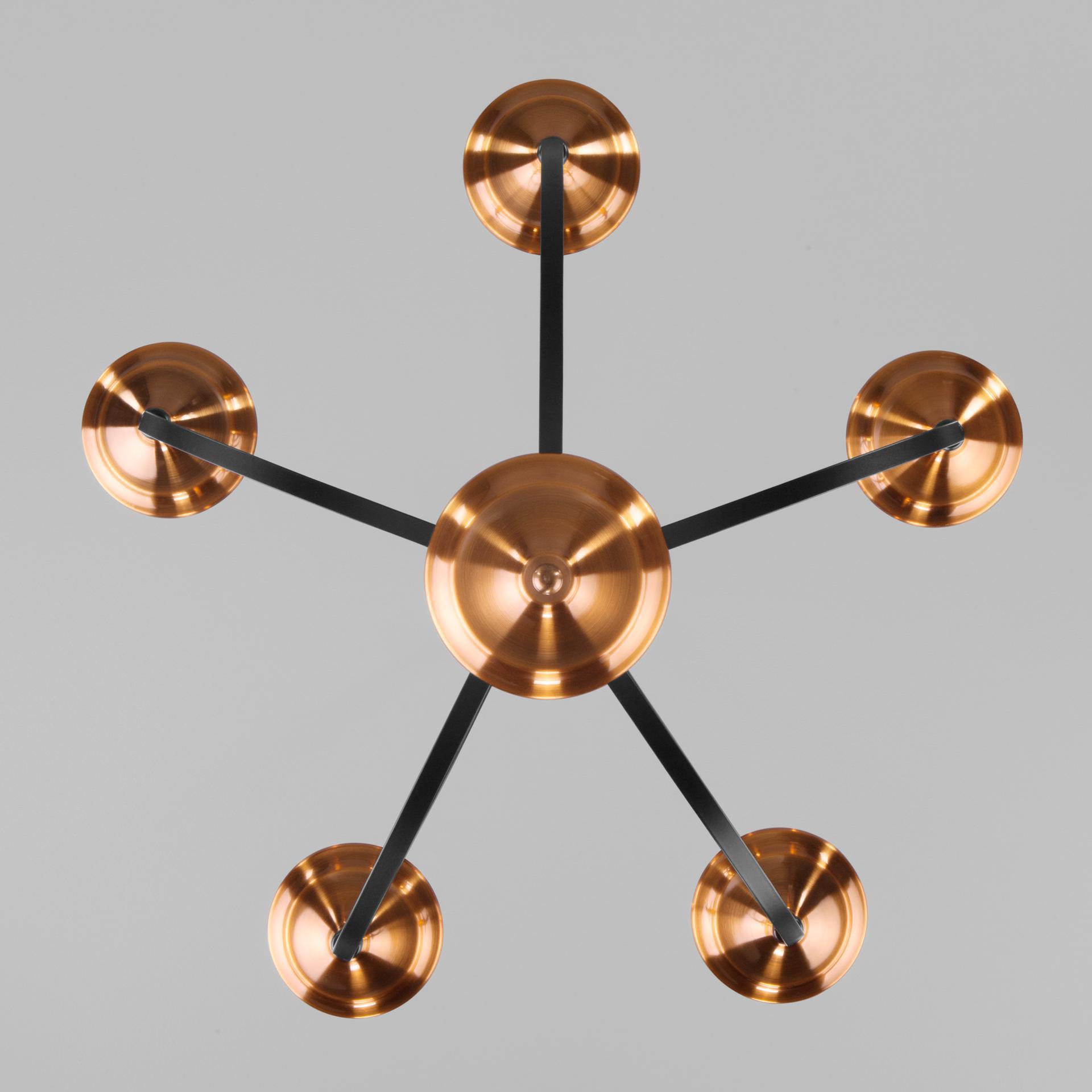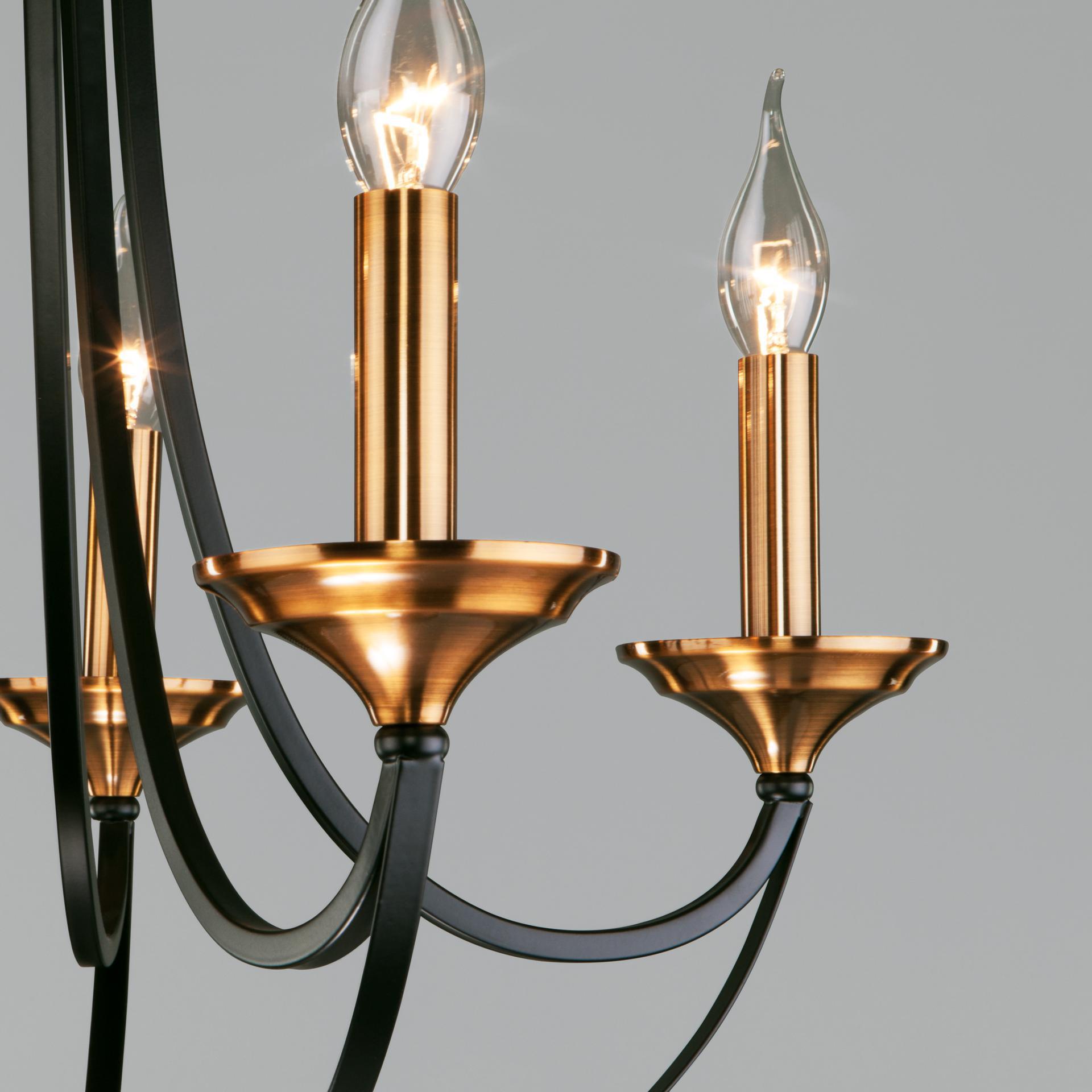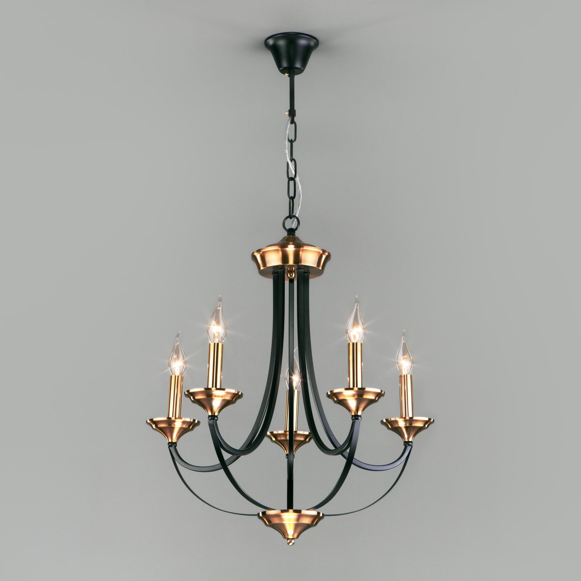 Подвесной светильник 60098/5 в черном цвете предназначен для создания дополнительного освещения и акцентной подсветки в современных интерьерах. Светильник со сменными лампами E14 создаст качественное освещение на площади 23 м кв. и подсветит рабочие зоны в зале, в кабинете, в загородном доме и в других местах. Пятирожковый светильник без плафонов эстетично смотрится с лампами свеча или свеча на ветру, подобный дизайн позволяет равномерно заполнять помещение светом. Накладной светильник легко устанавливается на потолке при помощи крюка. Наш интернет-магазин предлагает недорого приобрести подвесной светильник с бесплатной доставкой по Москве, России и странам СНГ.