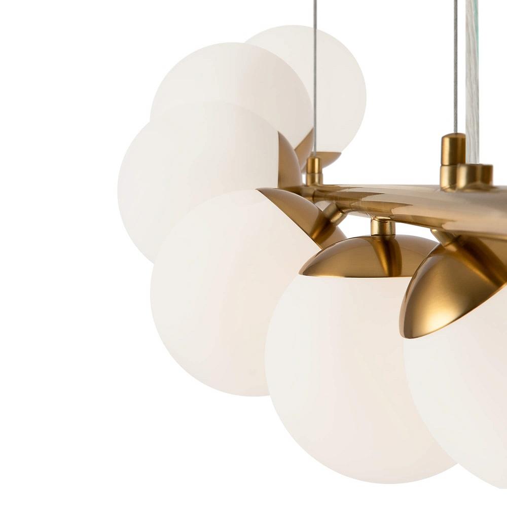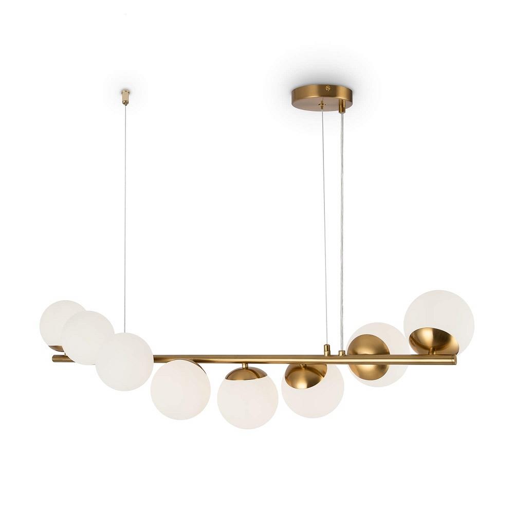 Изумительная модель FR5199PL-08BS1 от немецкой компании Freya относится к коллекции Modern и отлично подойдет для установки на потолок в гостиной, оформленной в стиле модерн. Подвесной светильник Zing FR5199PL-08BS1 с плафонами в виде шаров осветит помещение площадью 32 кв. м. Производитель Freya рекомендует использовать для устройства лампы накаливания с цоколем E27 и мощностью 60 W. Прибор произведен с использованием материалов: металл и стекло. Основным цветом товара является латунный и белый. Подвесной светильник Zing FR5199PL-08BS1 продается по цене 23990 руб. Торопитесь сделать заказ в интернет-магазине SvetONe.