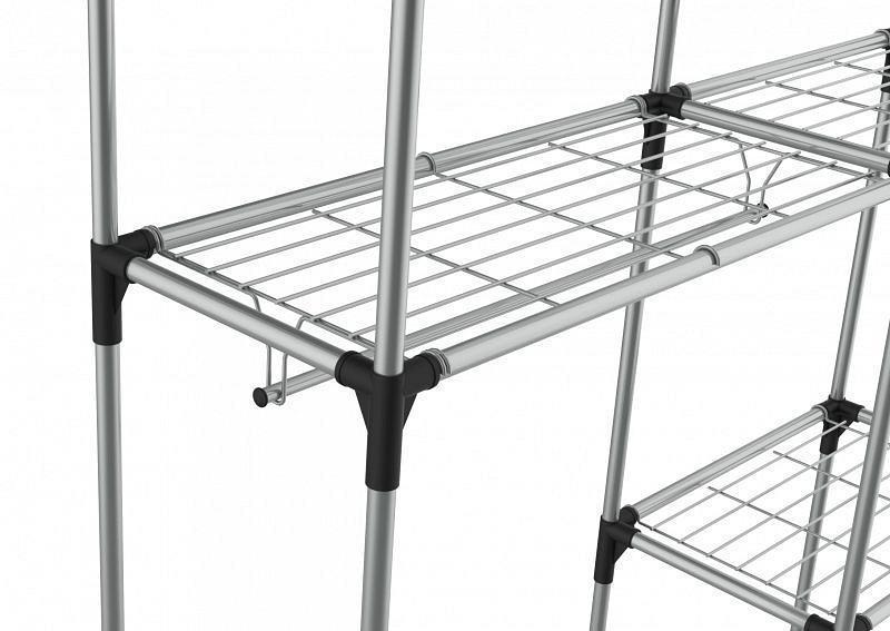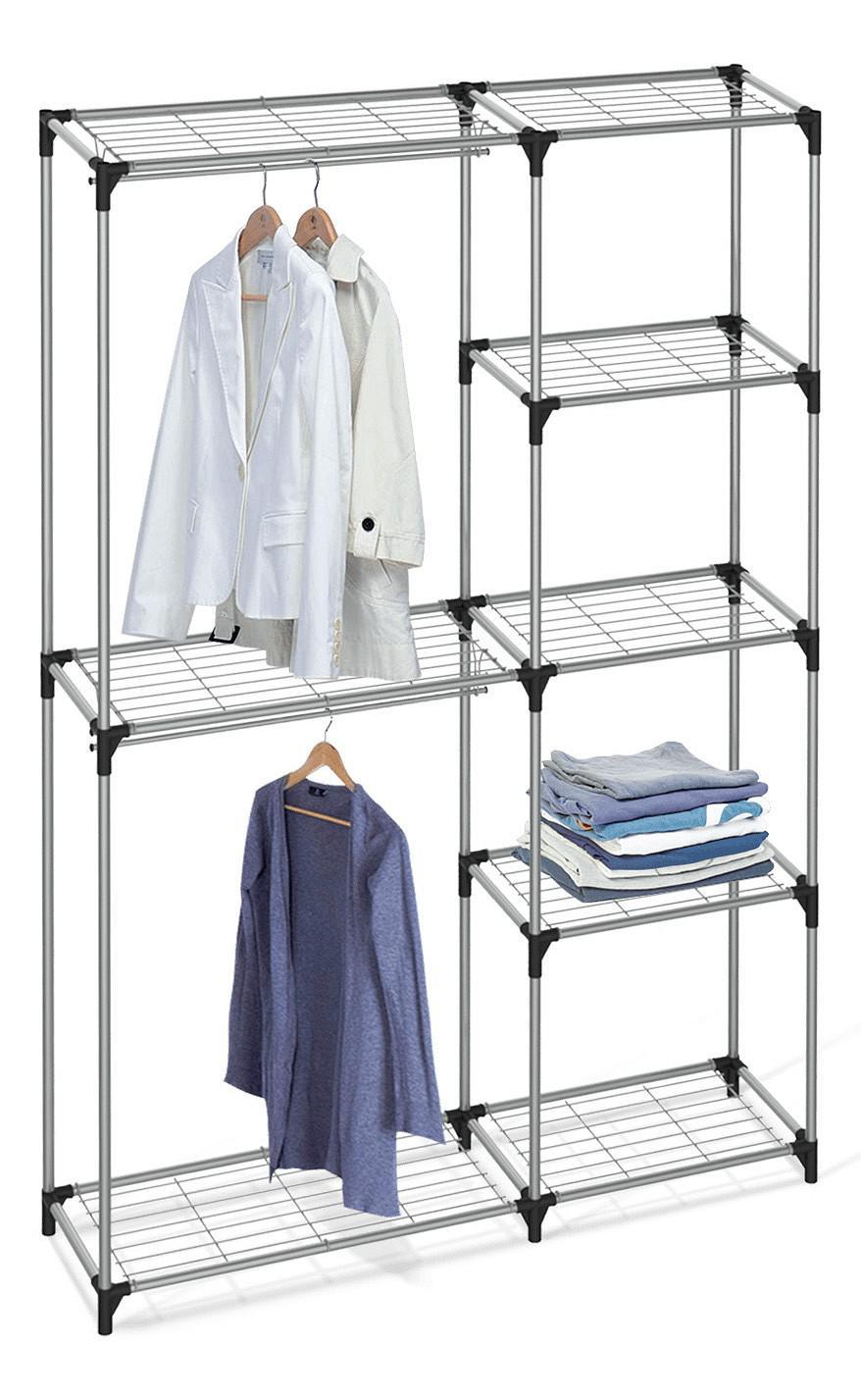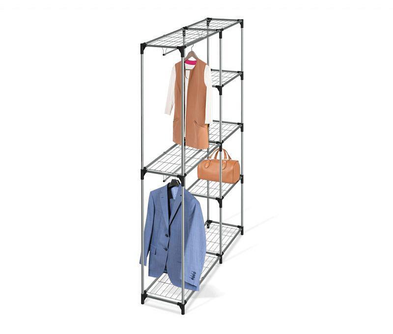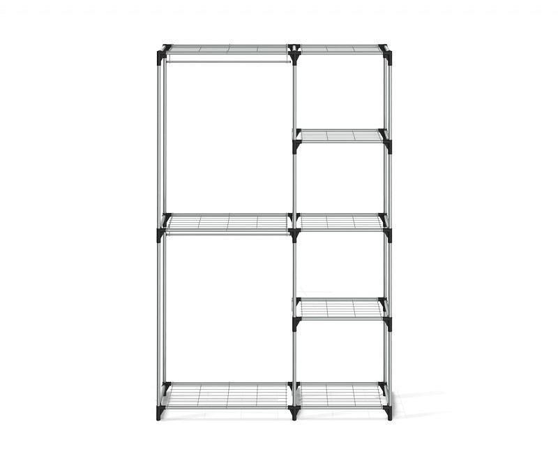 Вы можете спокойно вешать одежду, ставить обувь и хранить все необходимое рядом. Все полки съемные, можно собрать каркас с учетом ваших требований для хранения вещей.